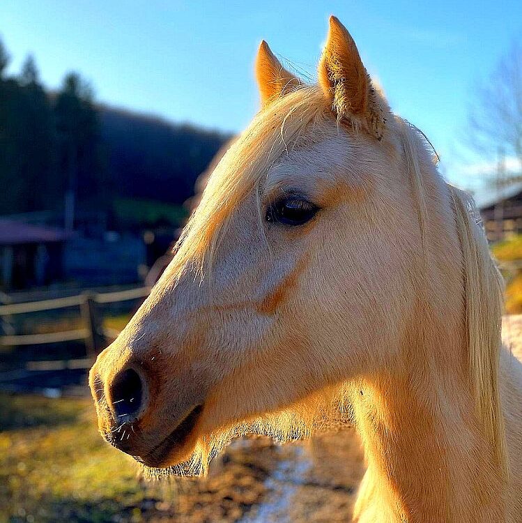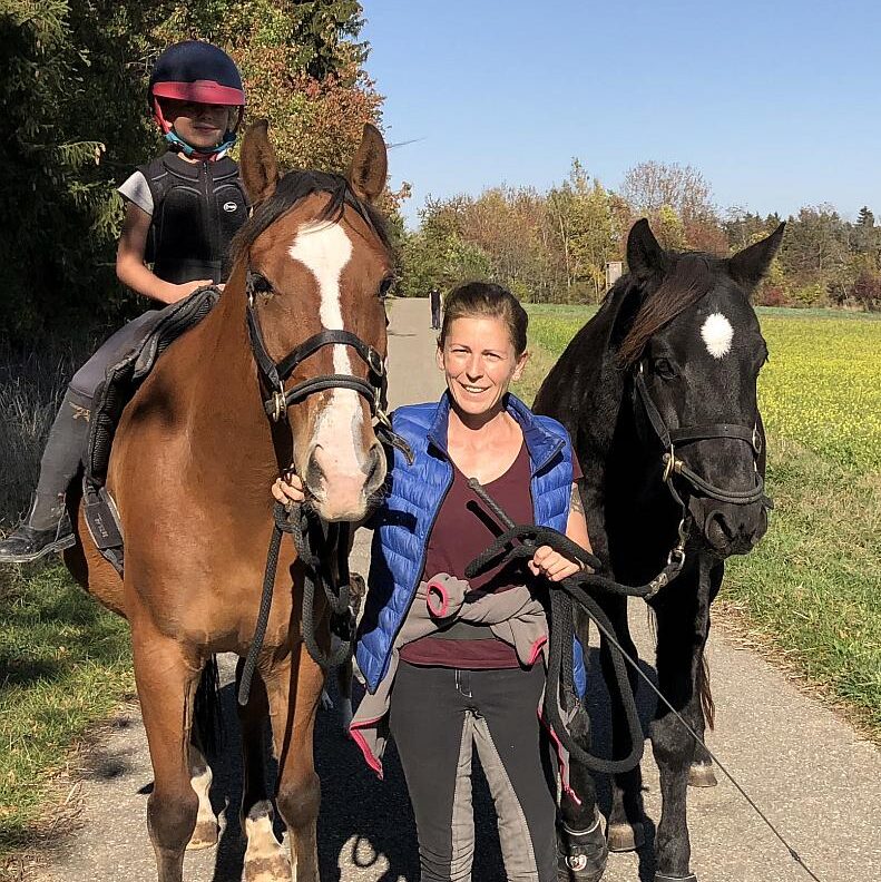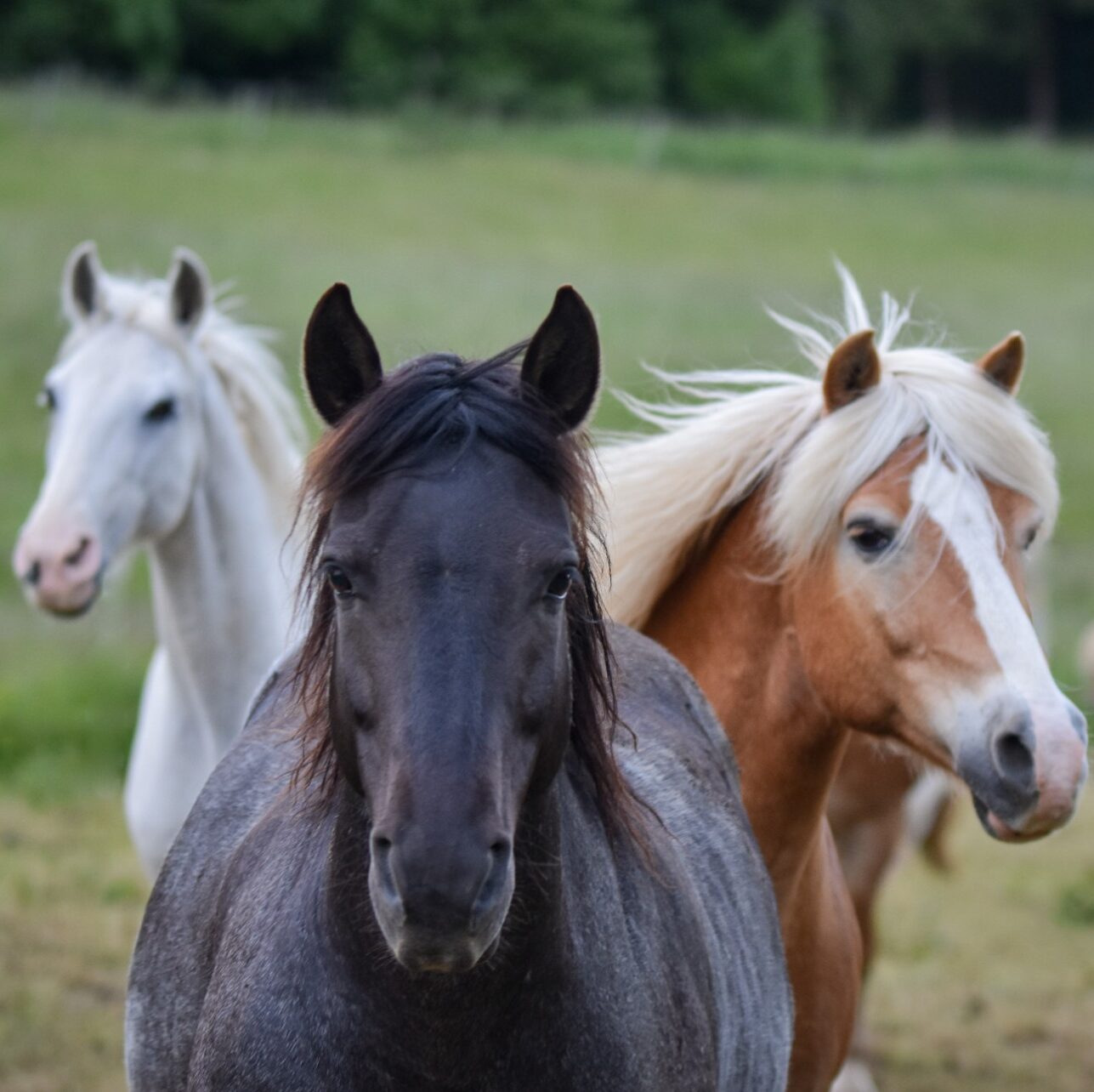 Hätte uns Eva 2013 nicht aufgenommen, wäre Ramon (Bayerisches Warmblut, Rappe, 23 Jahre) vermutlich heute nicht mehr am Leben. Als ich ihn übernahm, lief er quasi nur noch auf drei Beinen. Kaum jemand hatte gedacht, dass das nochmal werden würde. Dank der Offenstallthaltung und der ganzheitlichen Betreuung durch Hufschmied und Tierheilpraktikerin, gehen wir heute sogar wieder mit Erfolg in die Reitstunde. Aber am liebsten sind wir draussen im Gelände und bolzen mit anderen Pferden über die Wiesen 😉 Unser Nachwuchspferd Luke (Conjunto Mestizio, Brauner, 6 Jahre) kam im letzten Jahr zu uns und lebt grade noch seine Flegeljahre mit den anderen Jungpferden in der Herde aus. Wenn aber meine kleine Tochter zum spazierengehen draufsitzen darf, ist er brav wie ein Lämmchen.