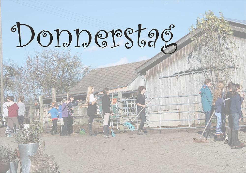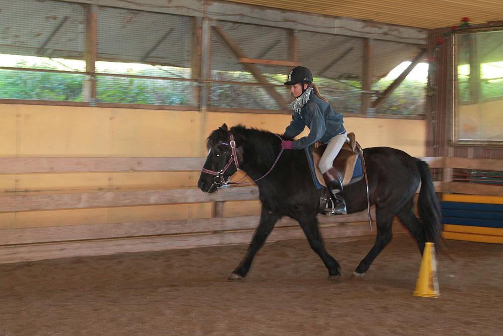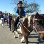 Dienstag, 29. Oktober 2013: Auch heute gab es jede Menge zu tun! Während unsere VFD Junioren nach dem Frühstück Theorieunterricht hatten, durften die restlichen Kids die Pferde füttern. Um 10 Uhr gings dann los mit dem Tagesprogramm und die Pferde wurden geholt und gerichtet. Anschließend „verschwand“ eine Gruppe im Gelände zum Ausritt und auch Halle und Reitplatz waren belegt. Danach Wechsel und die nächsten Gruppen zogen los. Nach dem Mittagessen und der Mittagspause startete der Nachmittag – wieder mit Reiten! Als die Neulinge loszogen und die anderen Kids geführt haben, waren noch genug Helfer übrig und ruckzuck nahmen sie auch noch die Hunde mit und Ivy, unsere kleine Ausbrecherkönigin! Das Wetter wurde noch recht nett, zwar nicht ganz so warm wie am Montag, aber immerhin war es trocken. Später zog noch eine große Gruppe mit einigen Rentnerpferden zum Abendspaziergang los, bevor alle wieder da waren, der Hof gefegt und sich fürs Abendessen und Abendprogramm gerichtet wurde.