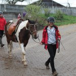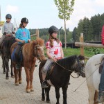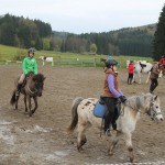 Montag, 21. April 2014: ….und weiter gehts, die Kids von Ostern II kommen! Der Wetterbericht tat mal so, als ob er nicht stimmt und schickte ein paar Sonnenstrahlen. Doch kaum war das MIttagessen fertig schüttete es wie aus Eimern! Ok, wir hatten ja noch die Mittagspause und es klappte, denn nach der Pause wurde es langsam weniger und gegen Abend kam dann wirklich nochmal die Sonne raus. Wenigstens war es nicht kalt dabei, aber die Bilderausbeute ist nicht sooo groß……! Egal, die Mädels waren trotzdem gut drauf, putzten und sattelten und ritten in Gruppen auf dem Platz und in der Halle. Heute Abend werden dann die Reitgruppen eingeteilt, in denen ab Morgen der Reitunterricht stattfindet und vor dem Abendessen wurde noch eine Runde „Pferde führen“ geübt, jeder führte jeden! Nach dem Abendessen gibt es noch die Hofrallye und dann schlafen hoffentlich alle fix, damit sie Morgen ausgeschlafen sind. Schaun wir mal….. 😉