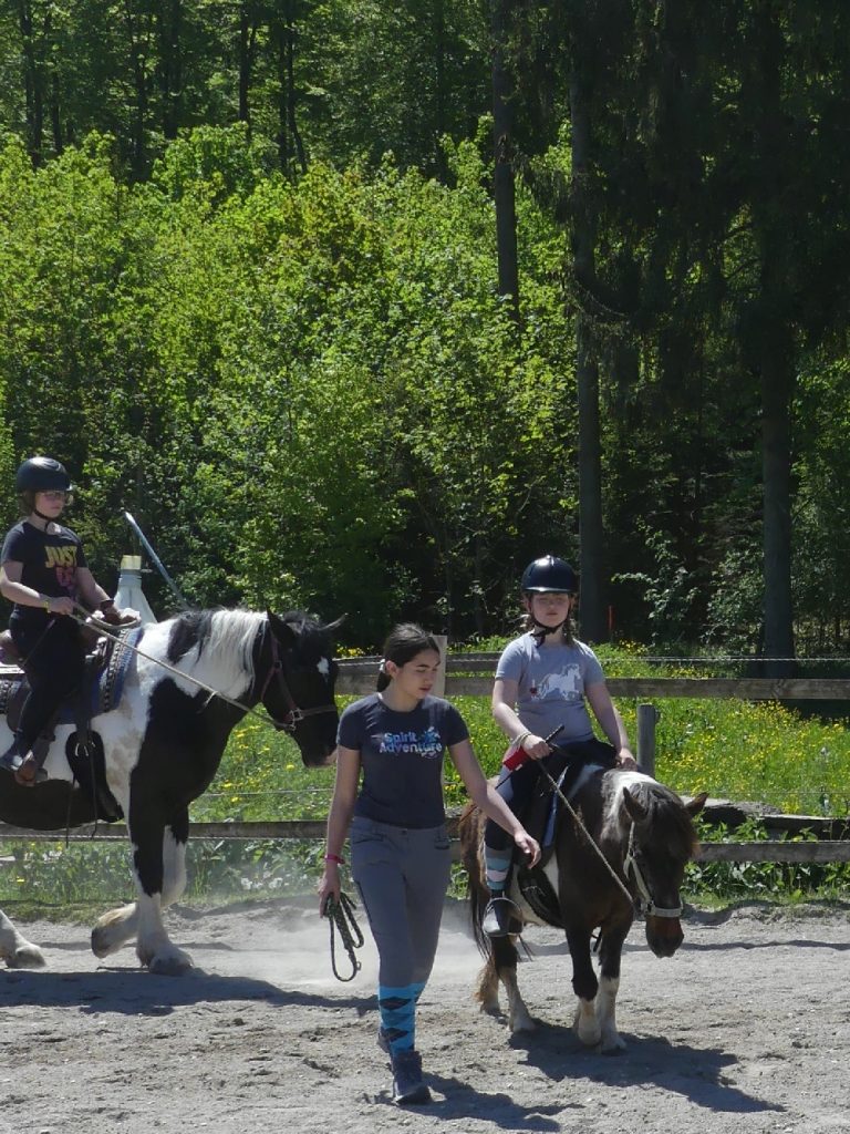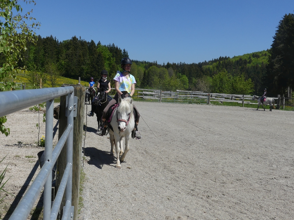 Donnerstag, 03. Juni 2021: „Waaaaas, heute ist schon Donnerstag? Wir wollen nicht, dass die Reiterferien morgen shcon vorbei sind. Es fühlt sich an als wäre es erst Dienstag“. So oder so ähnlich tönte es heute aus mehreren Ecken. Die Kinder fühlen sich so wohl und haben Spaß mit den Pferden und Ponies. Heute wurde nochmal fleißig in der Reitbahn und beim Ausreiten geübt und was wir auf den Bildern sehen, kann sich doch echt sehen lassen. Natürlich kam auch das Kuscheln nicht zu kurz, schließlich gewinnt man so ein Pony in 4 Tagen doch ganz schön lieb. Am Mittag musste dann beratschlagt werden welche Aktivitäten beim Wunschprogramm gewählt werden sollen. Und auch der Wettergott hat es heute nochmal gut mit uns gemeint und das angekündigte Gewitter vorbeiziehen lassen.