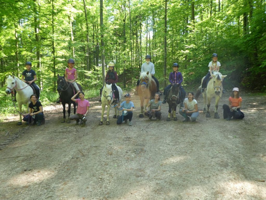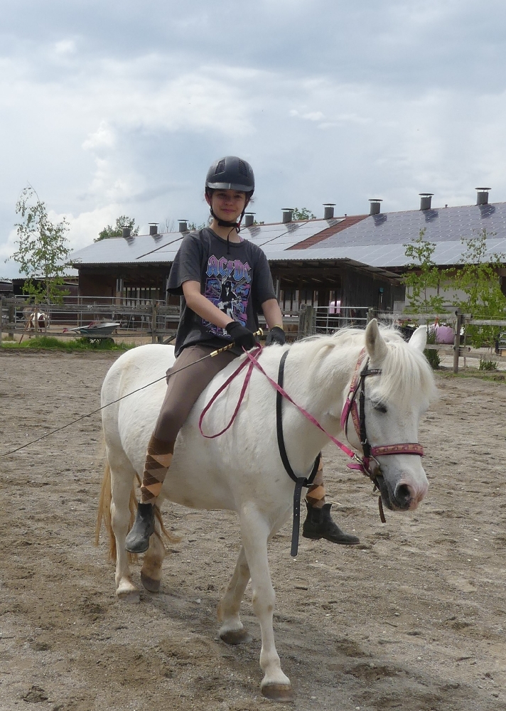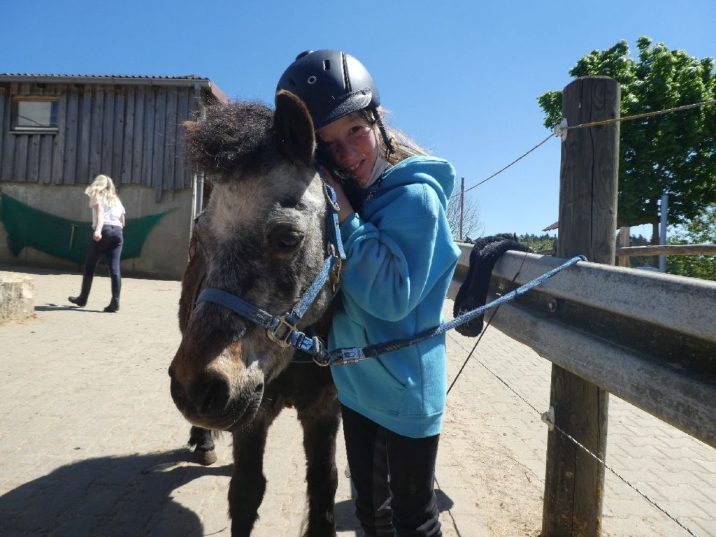 Dienstag, 01. Juni 2021: Uih, heute haben wir mal ordentlich Sonnencreme verbraucht! Kein Wölkchen am Himmel, ein feiner Wind – so konnte man es guuut aushalten! Einige Kids waren schon müde von gestern, die Anreisezeit wurde bis zur letzten Sekunde ausgenutzt! 😉 Aber alle waren gut drauf und so konnte der Tag starten. Halle, Platz, ausreiten – es gab viel zu tun! Die Großen halfen den Kleinen und im Laufe des Tages wurde es immer lebhafter…. Ok, es kennen sich sehr viele der Kids, da ist das kein Wunder. Oder man hat die Ferienfreundin vom letzten Jahr wieder getroffen und muss sich viel erzählen. Mittagessen, Mittagspause, saure Schlangen und weiter gings im Programm. Zwischen den Reiteinheiten wurden die Bollen abgesammelt von den Liegeflächen im Stall, die Kids halfen beim Zusatzfutter für die älteren Pferde oder mussten akut mit ihren Pferden schmusen. Der Tag war ruckzuck rum und die Elterntaxis kamen. Wir freuen uns auf einen neuen, sonnigen Tag Morgen.