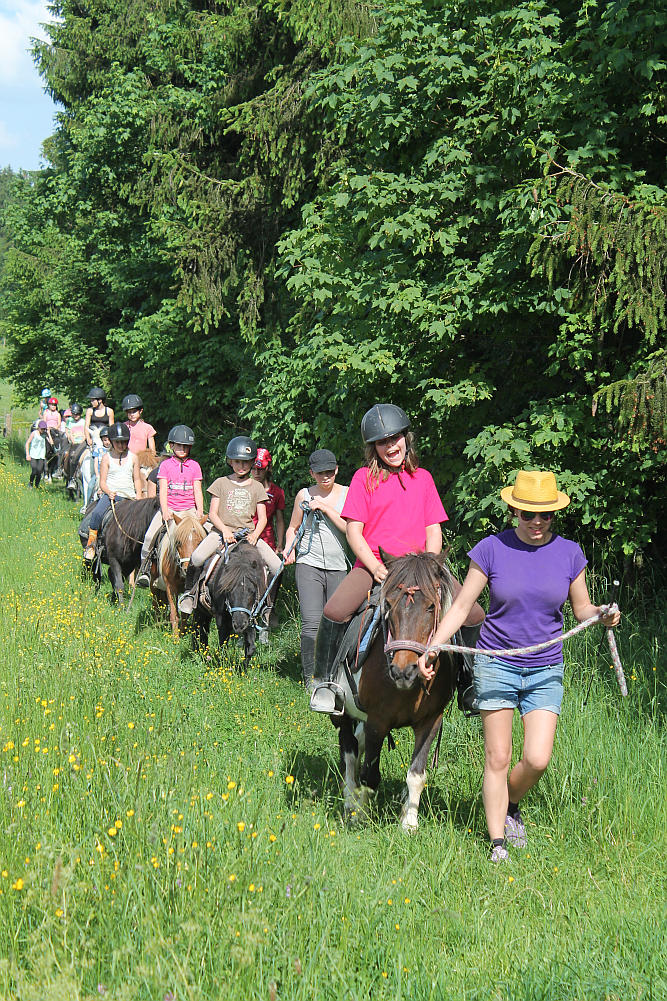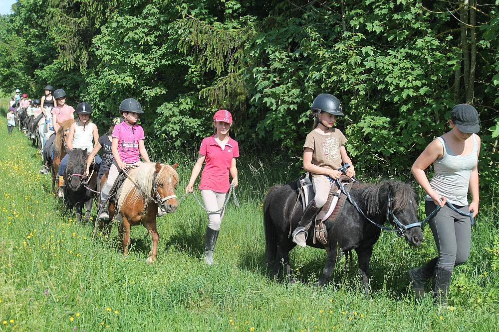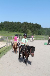 Donnerstag, 12. Juni 2014: Wir hatten schon wieder großes Glück: aus den angekündigten Gewitter- und Regenschauern, die uns den ganzen Tag übegleiten sollten, wurde nix! Es konnte also das ganz normale Tagesprogramm stattfinden und weils so schön war, wurden wieder die Schweife gewaschen! Mittlerweile ist die ganze Bande morgens müde und kommt immer später runter! Tja, gemistet werden muss trotzdem, drücken gilt nicht! 😉 Immer wieder gabs Wolken und man konnte sich von der Hitze und Schwüle etwas erholen. Neben dem Reiten gab es immer wieder längere Pausen, in denen die Kids entweder Klatschspiele machten, sich reihenweise gegenseitig die Muskeln kneteten und manchmal wurde auch gefegt und aufgeräumt! Zum MIttagessen wurden die „besten Kässpätzle, die ich je gegegssen hab“ serviert und der allnachmittägliche Nachtisch bestand aus Eis für Alle! Tja, so konnte man sichs gutgehen lassen und auch die ein oder anderen Wehwehchen verkraften. Heute Abend wird noch Reitzeit’s next Topmodel gesucht, ich hoffe, sie machen Fotos! Und leider leider müssen auch die Koffer schon wieder gepackt werden! Keine Sorge liebe Eltern, vermutlich hat ihr Kind nur die oberste Schicht aus dem Koffer gebraucht – das schont die Waschmaschine! Und die Kids, die kann man einweichen……. 😉