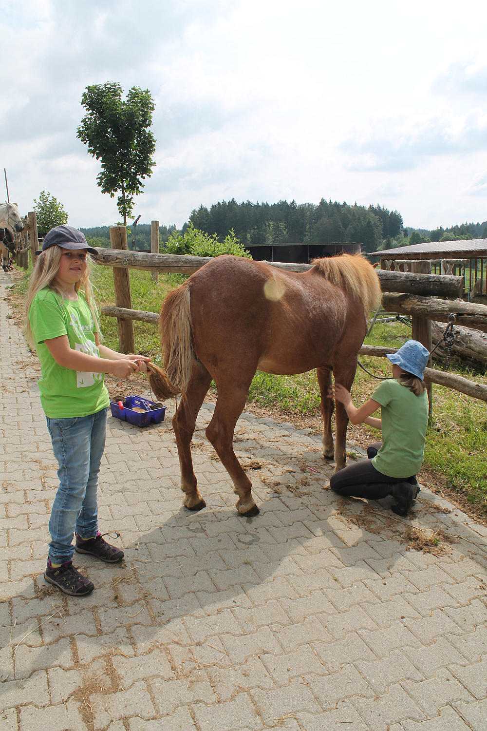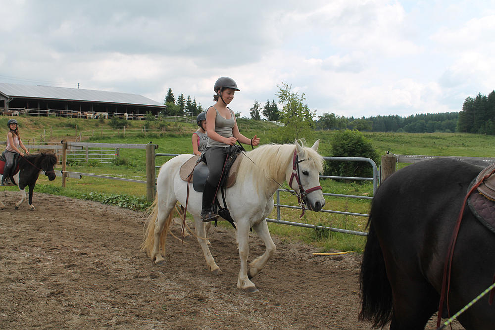 Heute mussten zunächst noch die Zimmer geräumt, aufgeräumt und gefegt werden, anschließend eine kleine Runde misten, bevor es losging mit dem Wunschprogrammtag. Mounted Games, Trailparcours, Reiten ohne Sattel, Voltigieren, Ausreiten und ein Beatuy Contest waren im Angebot und es ging hoch her! Der Fotograf wusste garnicht, wohin als erstes! Zum MIttagessen gab es leckere Gemüseburger und es wurde noch Reiseproviant für die langen Heimwege besorgt! Nachmittags kamen die weiteren Durchläufe und schon waren die ersten Eltern da. Bei einigen der Kids gab es lange Gesichter, sie wollten nicht heim. Aaaber wir sehen doch etliche dieses Jahr nochmal wieder! Schön, denn es war eine wirklich lustige Woche mit Euch!