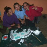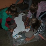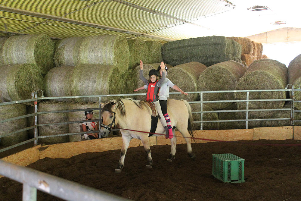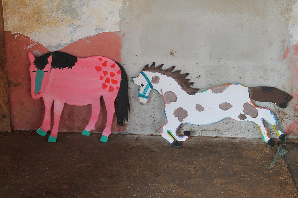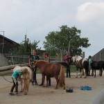Dienstag, 18. August 2015: Heut hatte der Himmel was zu lachen – besser gesagt: die Sonne lachte und es war stellenweise schon wieder angenehm warm. Die Kids hatten beste Laune und machten sich fleißig ans Werk: es wurde gemistet, gefegt und die Pferde wurden aus dem Stall geholt und gerichtet, bevor es ans Reiten ging. Abwechselnd machten sich die verschiedenen Kleingruppen auf entweder ins Gelände zum Ausritt, auf den Reitplatz oder in die Halle zur Reitstunde. Es wuselte also mal wieder überall. Zwischendrin wurden Futterschüsseln geputzt, einige der älteren Pferde geputzt und verwöhnt und auch der Globulidienst hatte starke Hilfe! Zum MIttagessen gab es leckeren Gemüsereis und die Töpfe waren fast leer. Nach Mittaspause und Laden stürmen ging es an das Nachmittagsprogramm, wobei da zwischendrin eine Tinkerputzrunde und als Abschluß gemeinsames Füttern aller Pferde angesagt waren. Nachdem die Tageskids abgeholt waren gab es Abendessen und als Abendprogramm wird weiter an der Holzpferdeherde gemalt, dem Gemeinschaftsprojekt der Sommerreiterferienkids 2015.