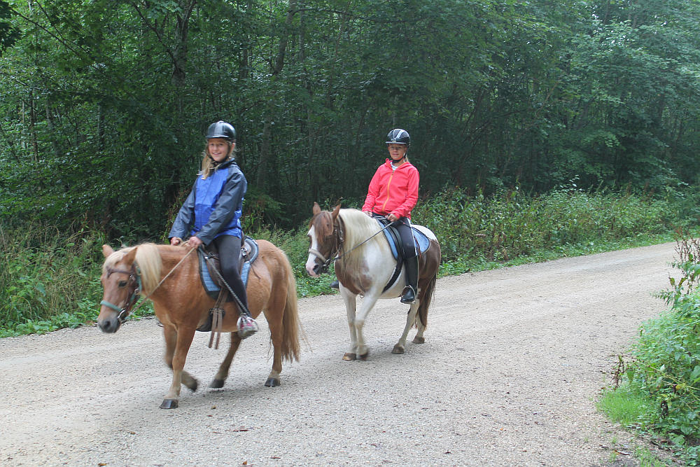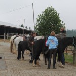 Mittwoch, 19. August 2015: Das gute Wetter hat uns leider verlassen und das, wo heute Berg-Bergfest ist! Zum Einen Bergfest von Sommer 3 und zum Anderen Bergfest der ganzen Sommerreiterferien 2015. Schaun wir mal, ob das noch was wird mit dem Lagerfeuer heute Abend! Gestern Abend wurde weiter an der Erweiterung der Pferdeherde gearbeitet und die Ergebnisse der ersten beiden Wochen stehen jetzt auch im Garten. Der Tag heute startete wieder mit den üblichen Morgenaktivitäten: aufstehen, anziehen, frühstücken, Regensachen holen, Pferde holen und losreiten. Zwischendrin gab es Futter auf zu füllen, beim Globuli verteilen zu helfen und immer wieder die Frage zu stellen: wann gibt es MIttagessen? 😉 Wir waren ja gespannt, denn heute gab es Spinat mit Kartoffeln und Rührei und eine Legende sagt ja, dass Kids keinen Spinat mögen. Tja, da stimmt wohl was nicht, denn außer 4 oder 5 Mädels mochten alle das grüne Gemüse und die Töpfe wurden schnell leer. Das hinderte aber niemanden daran, im Laden anschließend noch ein Eis oder ein paar saure Sachen einzukaufen und damit war auch die MIttagspause schnell rum. Nachmittags ging es weiter im Programm und leichte Müdigkeit machte sich breit: immer wieder sah man Ansammlungen von Gruppenkuschlern…… 😉 Der Hufschmied kam auch noch und konnte ein kleine Fortbildung machen, da er ruckzuck von Zuschauerinnen umgeben war. Heute Abend wie gesagt: Lagerfeuer und Grillen – mal sehen, ob das alles indoor stattfand oder ob der Regen ein Einsehen hatte!