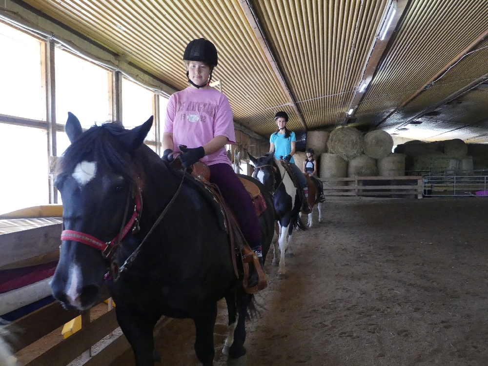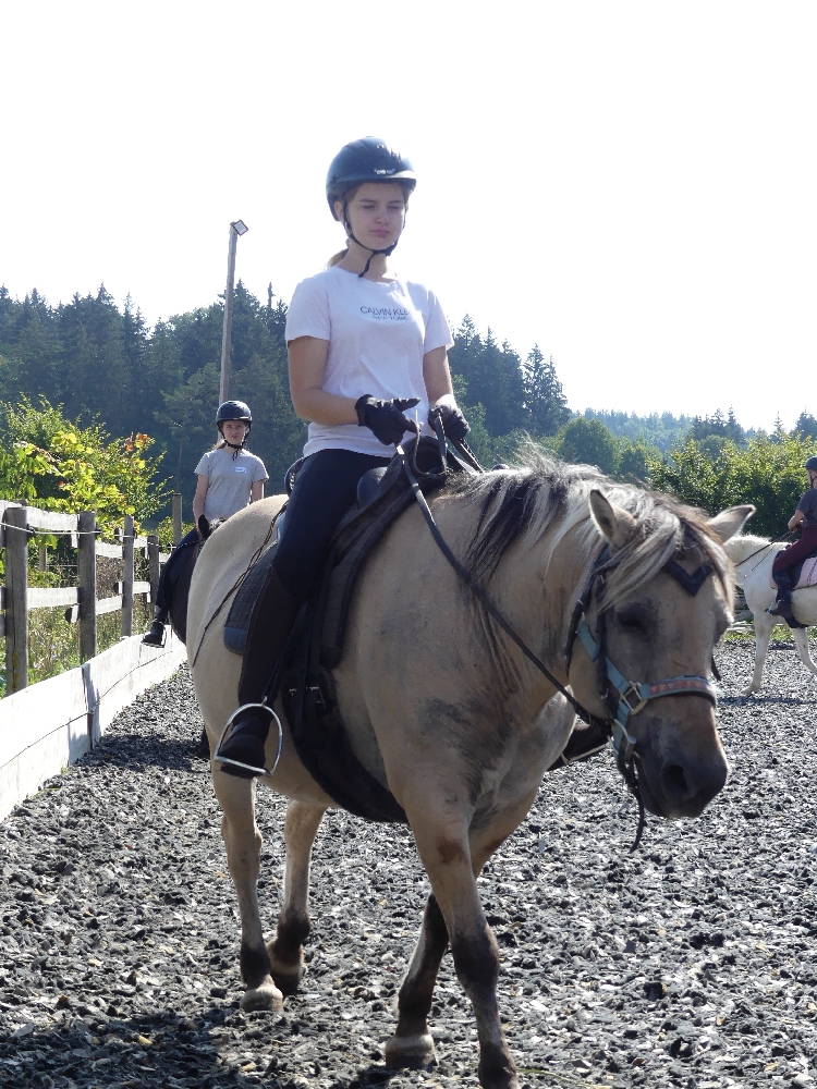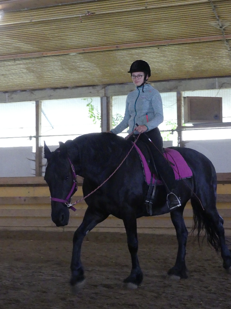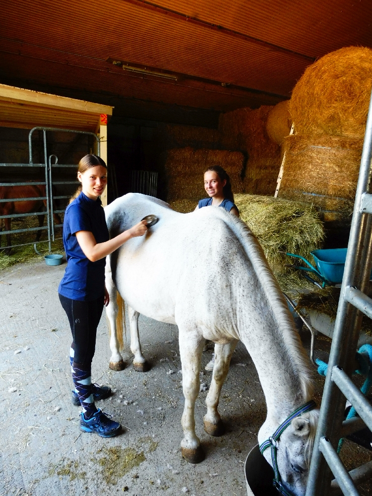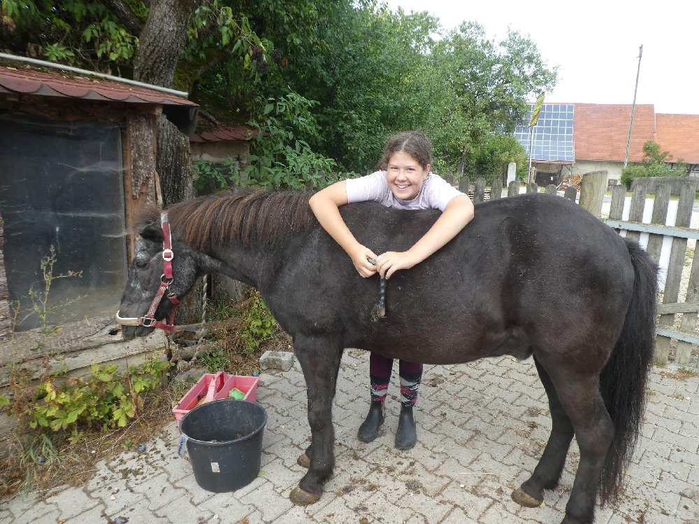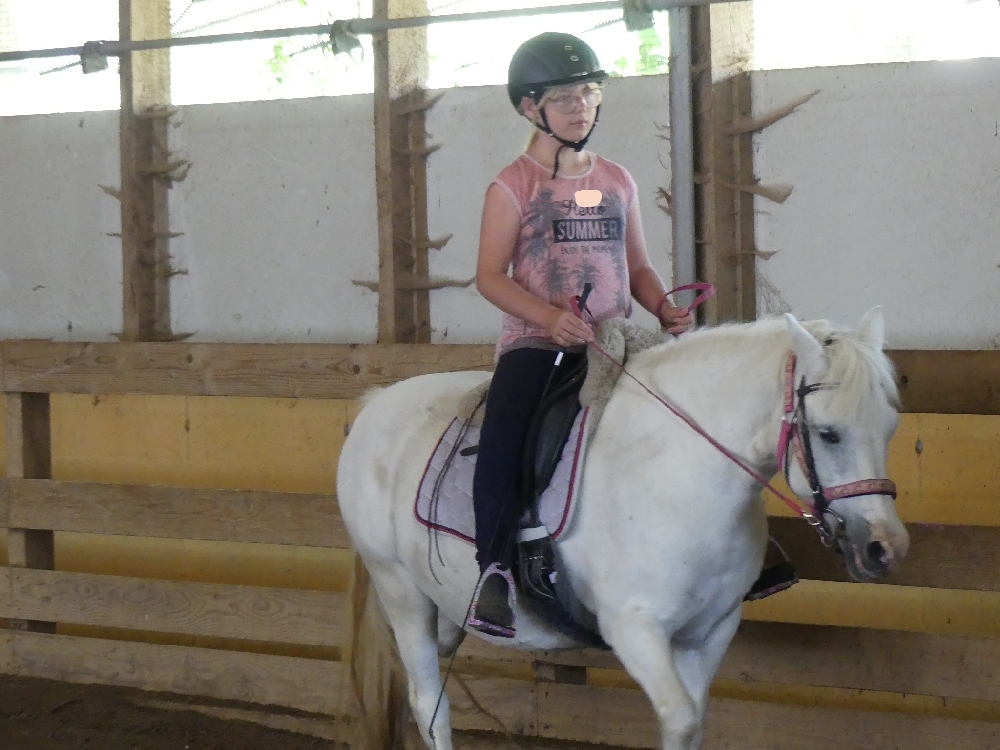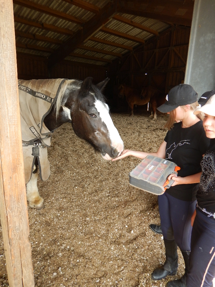 Montag, 15. August 2022: Weiter gehts mit Sommer 3! Es kamen wirklich alle pünktlich an, diese Woche sind viele neue Gesichter dabei, da gibt es wieder mal Löcher im Bauch… 😉 Nein, Scherz, es sind ja genug Betreuerinnen da und auch einige Teilnehmerinnen, die schon öfter da waren oder auch hier reiten, das wird schon klappen! Jedenfalls haben alle Kids ein Pferd bekommen, ein Bett für jeden war auch da und so konnte es losgehen! Nach der Pferde- und Zimmereinteilung mit anschließendem Hofrundgang wurden zuerst die Zimmer bezogen. Danach bekamen alle ihre Pferde für die Woche gesagt und jeder durfte sein Pferd rausholen zum ersten Kennenlernen und Putzen. Und weil die ganze Aufregung auch Hunger macht, gab es noch Mittagessen und in der Mittagspause wurde der Laden gestürmt, bevor es eeendlich zum Reiten ging. Nach und nach kamen alle in der Reithalle vorbei zur Probereitstunde und um zu schauen, ob Kind und Pferd zusammen passen. Heute Abend werden die Kleingruppen eingeteilt, in denen ab Morgen der normale Reitunterricht stattfindet. Was es als Abendprogramm geben wird? Mhm, ist etwas wetterabhängig, im Moment haben wir 1 Stunde Sonne, dann 15 Minuten Regen, dann wieder 1 Stunde Sonne usw. Naja, da wird uns was einfallen, da bin ich mir sicher!