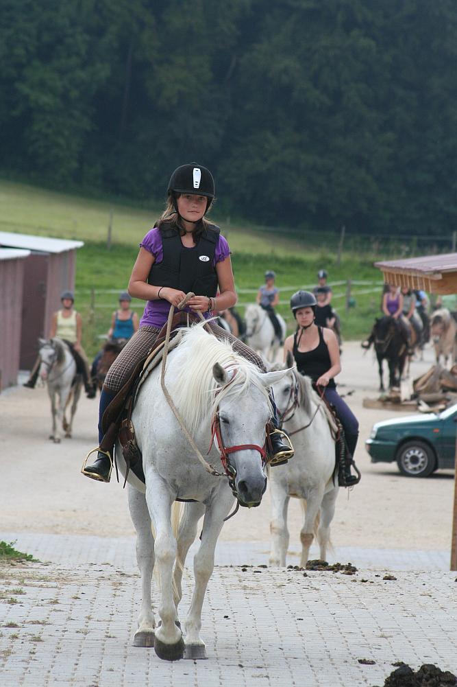 Freitag, 7. August 2009: Schon ist die erste Reiterferienwoche rum! Allerdings gabs ja erst noch den Freitag zu erleben, was mit Koffer runterbringen und Zimmer fegen begann. Auch das Misten gehörte wie jeden Tag dazu. Die Kutschenkids konnten nochmal ihre Pferde putzen und knuddeln, die Reiterinnen richteten alles für den Ausritt. Als erstes startete die Kutsche samt 11 Kids und Proviant, danach die Reiterinnen. Das war ein tolles Bild, die ganze Karawane! Nach doch einigen Stunden tauchten alle wieder auf, es wurde abgesattelt, alles verräumt und ein letztes Mal gemeinsam Bollen gesammelt auf dem Weg. Alle durften schließlich noch zusammen in den Stall und sich von ihren Pferden verabschieden. Manche nahmen dazu flugs noch die Eltern mit und die Pferde hofften auf viele Karotten….. 😉 Zum Kaffee- und Kuchenklatsch gabs noch eine Überraschung und schließlich die ersten Verabschiedungen, bei manchen auch mit Tränen und dem Versprechen: wir kommen wieder! Da wurde sogar schon ein Pferd reserviert fürs nächste Mal……