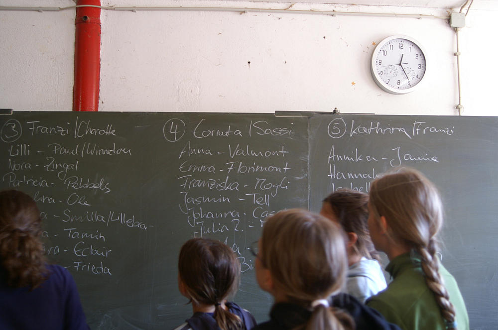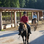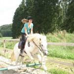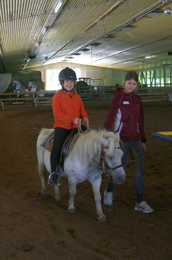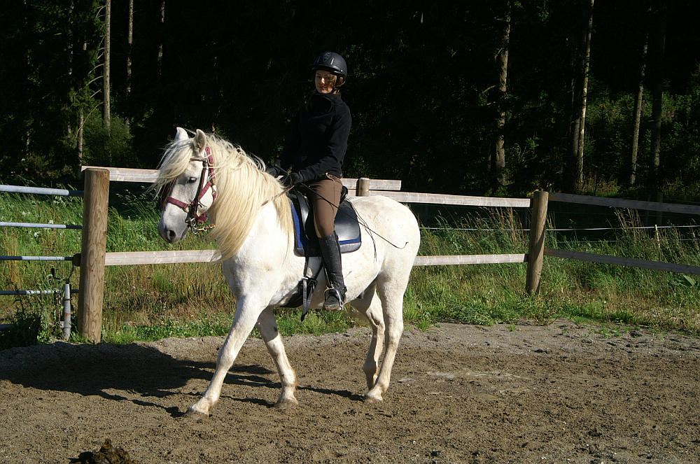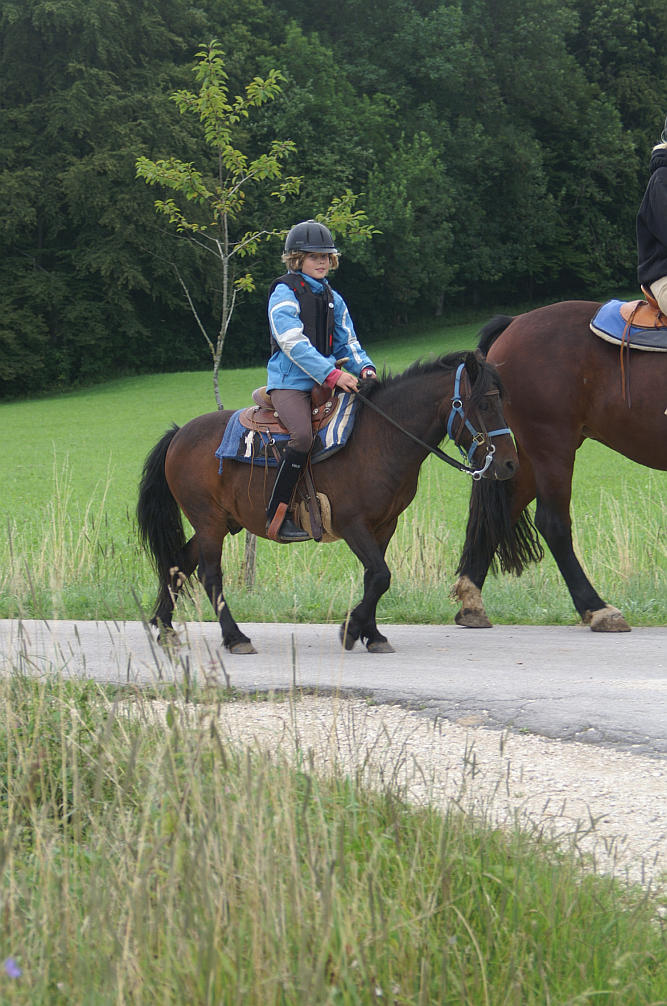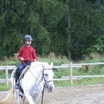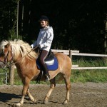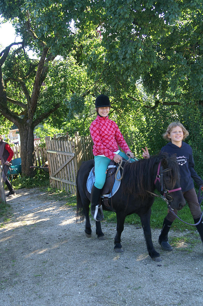Montag, 8. August 2011: Seit heute reiten die Kids von Sommer II. Fast pünktlich kamen alle an, verstauten flugs ihr Gepäck und los gings zu Vorstellungsrunde, Rundgang und Zimmerverteilung. Die Betten wurden bezogen und noch schnell die Pferde verteilt, dann gabs auch schon Mittagessen. Anschließend eine kurze Mittagspause, dann endlich Pferde holen und los gings zur ersten Reitstunde. Dabei wird geschaut, ob Wunsch und Wirklichkeit zusammen kommen, Kind und Pferd zusammen passen und es werden die Kleingruppen zusammen gestellt, in denen der Unterricht stattfindet. Wieder einmal stellten so manche Kids fest, dass nicht nur ein großes Pferd ein Gutes. Viele der kleineren sind pfeffriger flotter und anspruchsvoller als so manch Großes. Naja, und aneinander gewöhnen müssen sich ja alle erst! Nach und nach kamen alle dran und konnten ihr Können zeigen. Heut Abend nach dem Abendessen gibts noch die Hofrallye und dann ab in die Betten. Mal schauen, wann heut Ruhe einkehrt…..