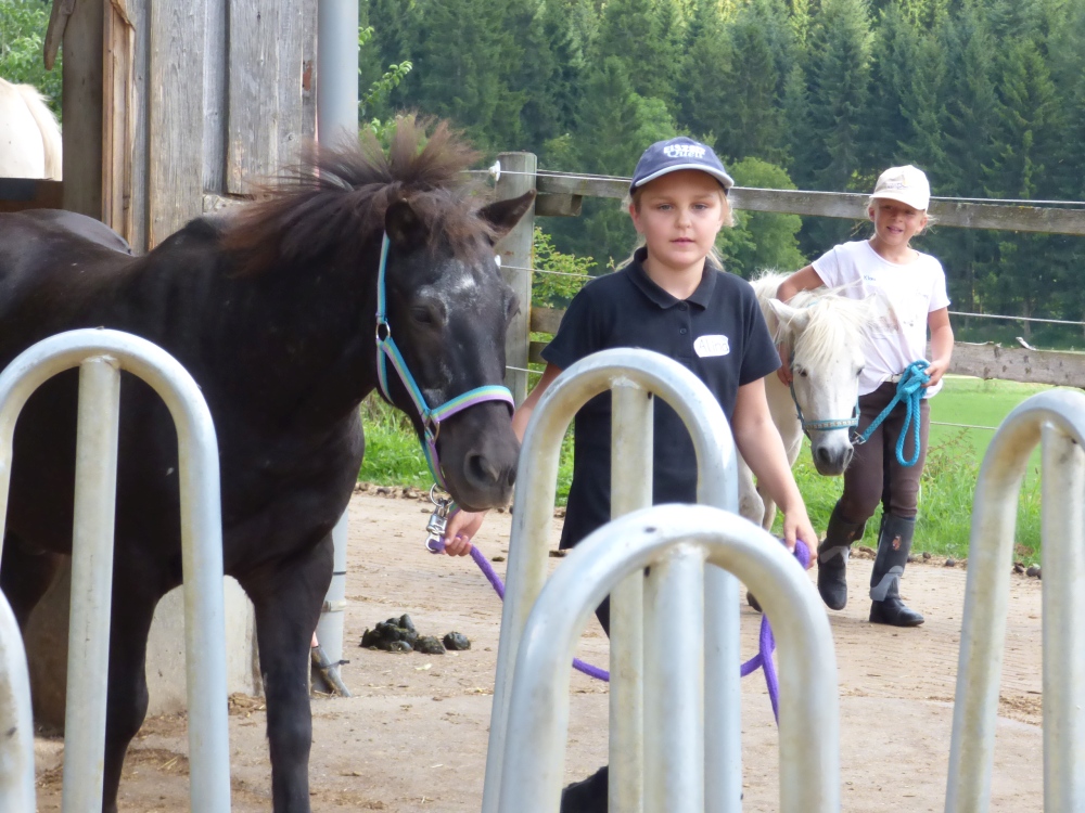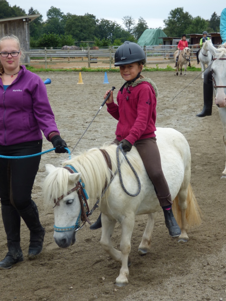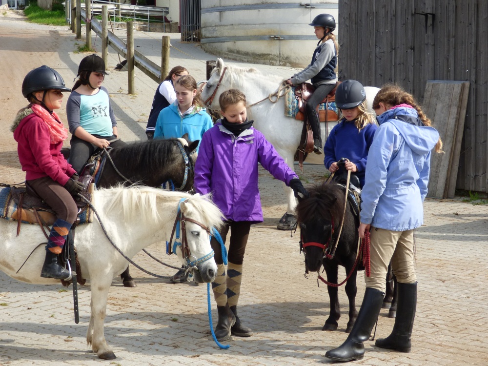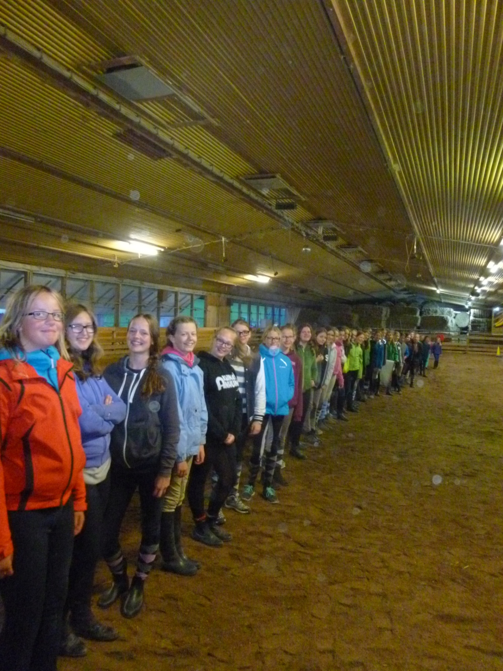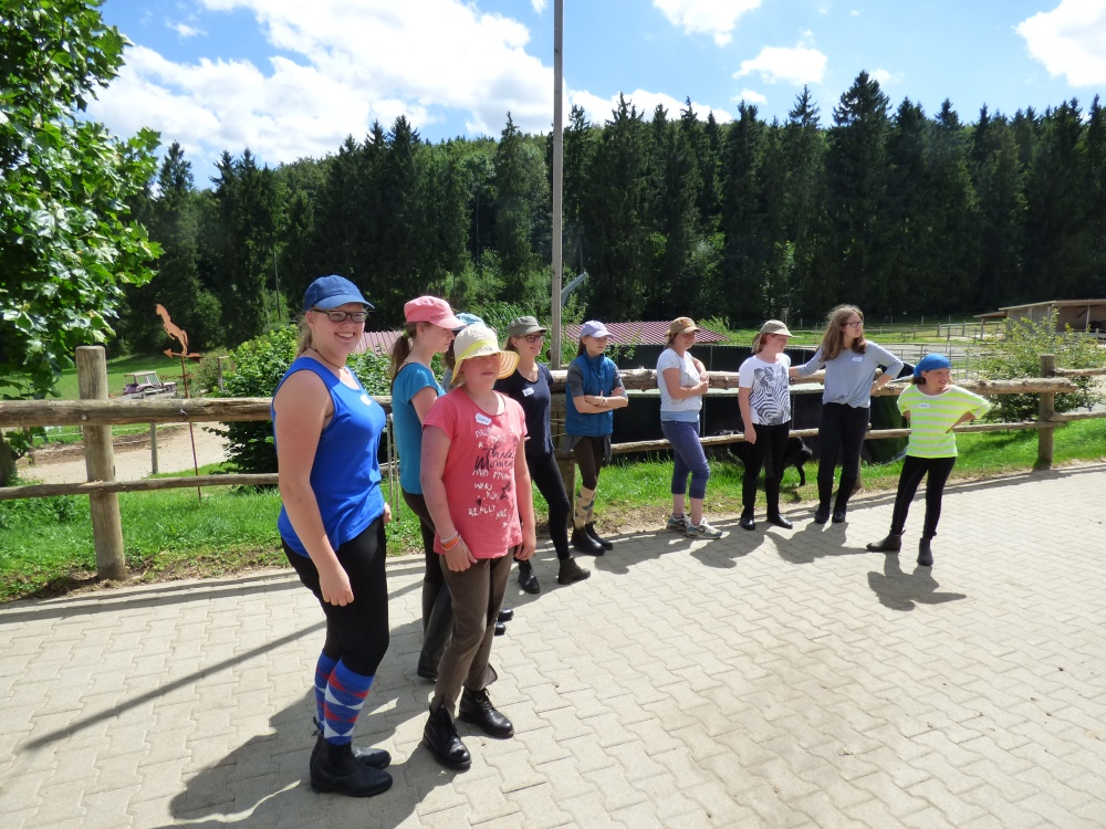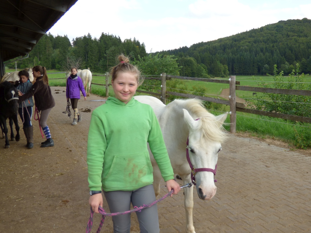 Montag, 8. August 2016: Blauer Himmel, strahlender Sonnenschein und ein laues Lüftchen: so starteten heute die Kids von Sommer 2 in ihre Reiterferienwoche. Nach Hofrundgang und Elternverabschiedung ging es los mit der Vorstellungsrunde und der Pferdeverteilung. Hurra, jeder bekommt ein eigenes….. 😉 Auch die Zimmer wurden eingeteilt und schon zogen alle los, ihre Betten beziehen und erste Freundinnen zu finden. Das klappt ja immer fix bei uns und so war vor dem Mittagessen eigentlich niemand mehr allein unterwegs. Nach den leckeren Nudeln mit Gemüses0ße (jaaa liebe Eltern: Gemüse…..) und einer Riesenschüssel Salat musste noch der Laden erobert werden und es war sogar noch Zeit für ein wenig Chillen. Und dann ging es endlich in den Stall zu den Pferden. Nach und nach kamen alle in der Reithalle vorbei zum Vorreiten und heute abend werden daraus die Kleingruppen „gebastelt“, in denen ab Morgen der Reitunterricht stattfindet. Heute Abend gilt es noch, den Hof per Hofrallye zu erkunden und z.B. zu schauen, wieviele Schimmel es gibt oder welche Pferde älter als 30 Jahre sind. Da sind sie sicher eine Weile beschäftigt…..