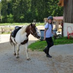 Freitag, 12. August 2016: Jetzt ist es passiert: die Reiterferienwoche 2 geht zu Ende….. Schon am Morgen sah man traurige Gesichter und auch der Himmel musste weinen! Und müde guckten alle…. 😉 Gestern abend gab es Koffer packen und noch eine Runde Völkerball, bevor es ins Bett ging. Heute morgen dann Zimmer räumen, aufräumen und fegen, nebst Müll entsorgen. Das klappte aber nicht wirklich gut und so gab es heute mal keinen Zimmercontest-Preis. Anschließend eine letzte Runde gemeinsames Misten und sie waren schnell! Jetzt war es Zeit, den Tagesplan zu erklären, damit jeder genau wusste, wann er wo mit wem sein sollte. Und dann…. ging es los: Reiten ohne Sattel, Trail, Horse Agility und ein kleiner Ausritt waren im ersten Durchgang dran. Nach dem Mittagessen – leckere Vergiburger zum Selberbasteln – ging es weiter. Da sich die meisten Kids für Reiten ohne Sattel und Horse Agility entschieden hatten, mussten wir uns sputen. Im 3. Durchgang stand außer den anderen Aktivitäten noch der Beautycontest auf dem Programm und die Mädels waren kreativ! Schon kamen die ersten Elterntaxis, aber die Kids hatten noch keine Zeit. An manchen Orten sah man traurige Kids und Tränen, da hätte man glatt mitweinen können… Schnell noch das Gruppenfoto machen, die Wochengewinner ehren und die Erinnerungsfotos verteilen und eeendlich konnte das reichhaltige Kuchenbuffet erobert werden. Den Abschied zögerten manche lange raus, aber irgendwann war es still auf dem Hof. Mädels, schee wars mit Euch, wenn auch manchmal eeetwas lauter als letzte Woche…. 😉 Und hier noch der Spruch der Woche: „Tausche Bruder gegen Pony“ …… 🙂