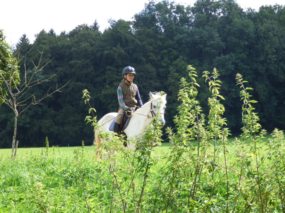 Donnerstag, 11. August 2016: Heute vor 17 Jahren hatten wir die letzte totale Sonnenfinsternis – nur mal so am Rande…. 😉 Von finster konnte aber heute wieder keine Rede sein, denn die Sonne schien warm vom Himmel, wenn keine Wolke im Weg war! Gestern Abend gab es nach dem Lagerfeuer noch die allseits beliebte Modenschau. Soll heissen: es darf verwendet werden, was im Umkreis rumliegt und damit werden die Models dann ausstaffiert. Natürlich gab es am Schluss auch den Gang auf dem Catwalk ( oder Horsewalk????) und vermutlich gibt es doch ein Foto für alle Teilnehmerinnen…. 😉 Heute morgen dann gab es viele müde Gesichter, aber es soll nicht am langen Geplausche heute nacht gelegen haben, na ob das mal so stimmt? Geritten wurde auch wieder und nebenbei auch gemistet, eingestreut, Sättel geputzt, gemalt, gefuttert (Lasagne) und viiiel gekichert! Der Laden wurde auch wieder gestürmt und heute standen Schokostangen hoch im Kurs. Am Nachmittag konnten sich die Mädels auch ihre Wünsche für den Wunschprogrammtag Morgen überlegen und dann aussuchen, das wird nochmal ein bunter Tag! Heute Abend müssen tatsächlich schon wieder die Koffer gepackt werden und vielleicht reicht es auch noch für eine kleine Actionrunde in der Halle.