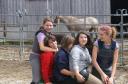 Also wie das sein kann, dass es gestern Eimerweise draussen schüttet und heut morgen ist strahlend blauer Himmel… Wenn das mal mit rechten Dingen zugeht! Egal: man kriegt sofort gute Laune, wenns so ist und auch die Pferde waren gut drauf – und dreckig! Da hatten die Kids ihre liebe Not, alles wegzukriegen an Staub und Dreck, denn den Pferden hat der Matsch von gestern prima gefallen! Und weils so war wurden heut die Schweife gewaschen, die hattens nämlich richtig nötig! Dass da auch der eine oder andere Wasserspritzer sein wahres Ziel verfehlte und „zufällig“ den Nachbarn traf war klar! Sofort wurde das Wetter genutzt und 2 Gruppen gingen gleich morgens ausreiten. Die anderen beiden durften mal wieder auf der „Fürstin“ turnen und machten wilde Sachen! Nach dem wohl sehr leckeren Nudelauflauf mit Salat heut mittag gehts weiter mit ausreiten und wenn das Wetter hält, dann wird Abends gegrillt und vielleicht auch genachtwandert…… (Anm.: Leider musste die Fotogräfin mal kurz in den Norden und konnte das Ende des Tages nicht live erleben!)