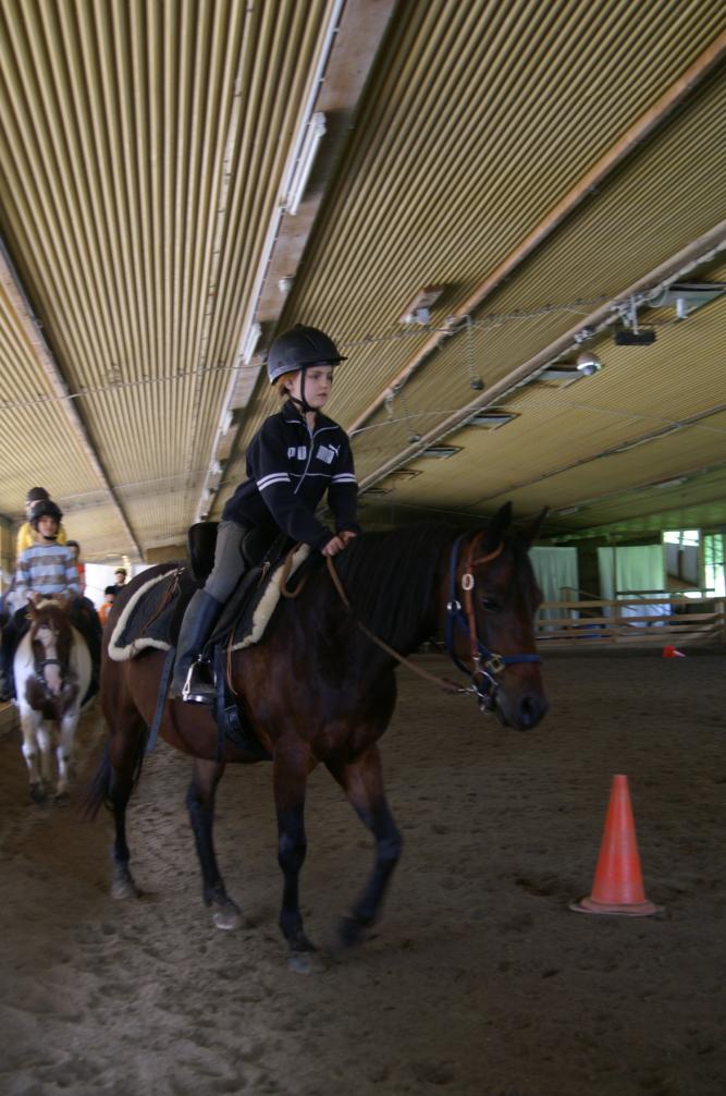 Mittwoch, 26. August 2009: …und wieder ein Bergfest! Und was für eins……. Aber der Reihe nach. Zuerst noch der HippHopp Nachtrag von gestern Abend! Da unsere Steffi, die absolute Dance-Lehrerin, im Urlaub ist, hat Kathrina sie würdig vertreten! Wie schon letzte Woche gabs auch gestern wieder Discokugel und Strahler. Heut Morgen gings nach dem Gemeinschaftsmisten ran an die Pferde und flugs waren 3 Gruppen ausgeritten und 2 in der Halle. Zwischendrin wurden je nach Vorkenntnisssen Grundlagen geübt: von der Koppel holen, Führen, wie halte ich den Strick, Slalom durch die Hütchen laufen, Labyrinth etc. Nach dem Mittagessen – Pellkartoffeln mit Kräuterquark und Salat – bekamen die Betreuer eine Einladung zu einer Vorführung in der Halle. Dort hatten einige der Mädels einen Parcous aufgebaut und sprangen als Pferde über die Hindernisse, die auch nach jeder Runde höher gemacht wurden. Natürlich gab das einen tosenden Applaus für die Darstellerinnen, die zum Schluß alle gemeinsam die Strecke „galoppierten“. Nach der Mittagspause gings weiter mit dem Programm und den Übungen und in der Küche wurden schon die Vorbereitungen fürs Grillen getroffen. Am Lagerfeuer wurde erst Stockbrot gebacken, dann gabs dazu die Würschtl und Gemüseschnitze und anschließend wurden noch die Sieger der Hofrallye sowie des Malwettbewerbs von heutNachmittag gekürt. Also jede Menge los und es war noch nicht Schluß, denn es wurde immer dunkler…… die Fausergeister machten sich auf den Weg……….. mal sehen, ob alle den Weg wieder nach Haus finden…… uaaaahhhhhhh……
