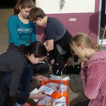 mit Uwe Brolle von der Outdoor first Aid Academy und realistischer Unfalldarstellung (Maskenbildnerin)